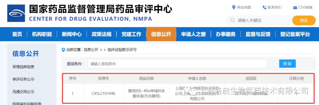 2022年01月26日,中国国家药品监督管理局药品审评中心(CDE)公示,上海5657威尼斯(中国)生物医药技术有限公司一款针对中重度哮喘治疗的核心药物LQ036——重组抗IL-4Rα单域抗体雾化液(毕赤酵母)的临床试验申请(IND)正式取得批准(通知书编号:2022LP00124),从IND受理到获批仅用2个月,此间无发补项。